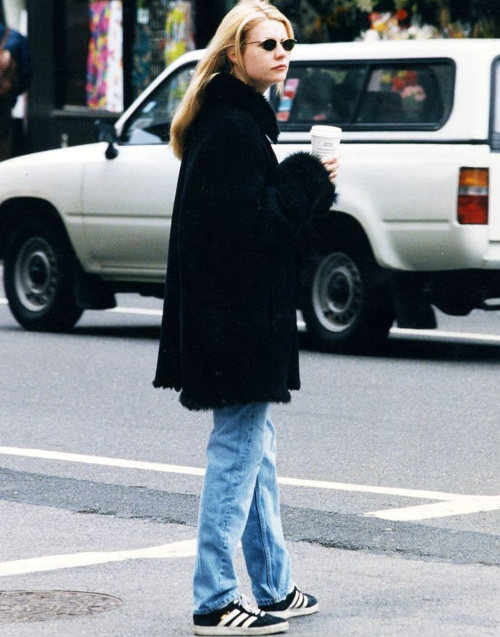 Bien sûr, les années 90 c'était aussi les raies en zigzag, les sourcils sur-épilés, les mascaras pour cheveux (yeurk, j'avais la panoplie complète), les platform shoes blanches et les nombrils à l'air... Je préfère comme toi me souvenir de ces tenues souvent simples, évidentes, qui ne cèdent rien au confort et laissent toute leur place à la présence de celles qui les portent. (et bon en l'occurrence, là c'est magnifiquement porté!). Merci Lise!