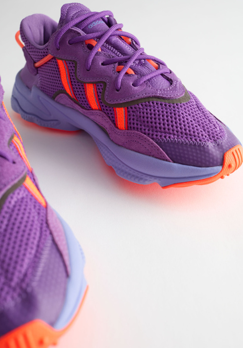 Avec ses allures de bestiole tropicale accro au bubble gum, la Ozweego semble avoir le pouvoir de conférer à celle qui la chausse l'équivalent énergétique d'un tube de Guronsan. Ajoutez à cela un trio de teintes vivifiantes devant lequel les idées noires auront bien du mal à ne pas s'évaporer et vous obtiendrez une paire de baskets qui gagnerait à être remboursée par la sécurité sociale.