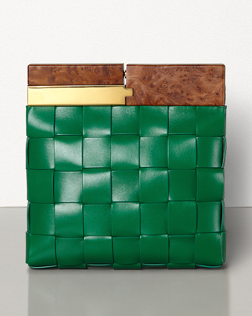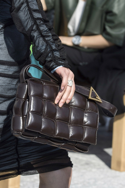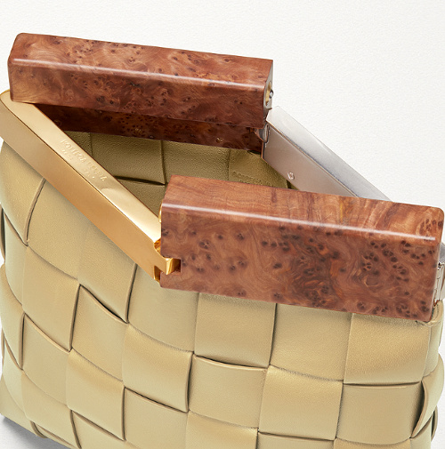 Entre la souplesse graphique de ses carreaux, l'éclat doré/argenté de sa patte en métal rectiligne et l'élégance du bois clair de sa anse évoquant les meubles en marqueterie du 19e siècle, celle-ci brille par sa singularité. Une singularité qui, contrairement autres créations de Daniel Lee (Bottega Veneta), parvient à séduire sans déstabiliser. On est en effet ici loin des boots massives envahissant actuellement Instagram, des mules aux bouts carrés nécessitant - afin d'avoir une chance d'être appréciées - de subir un intense lavage de cerveau, des cassettes bags aux allures de tablette de chocolat gonflable et autres mignardises légèrement indigestes imaginées par celui qui décrocha récemment pas moins de 3 British Fashion Awards…