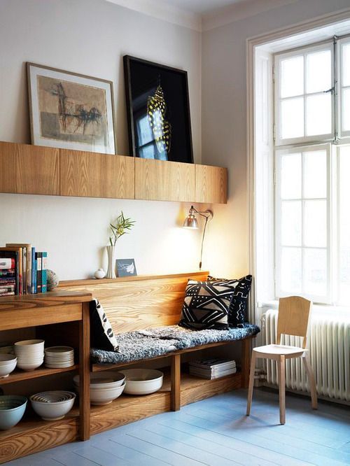 J'aime beaucoup les banquettes "insérées" dans les bibliothèques, mais je me demande si c'est vraiment confortable.