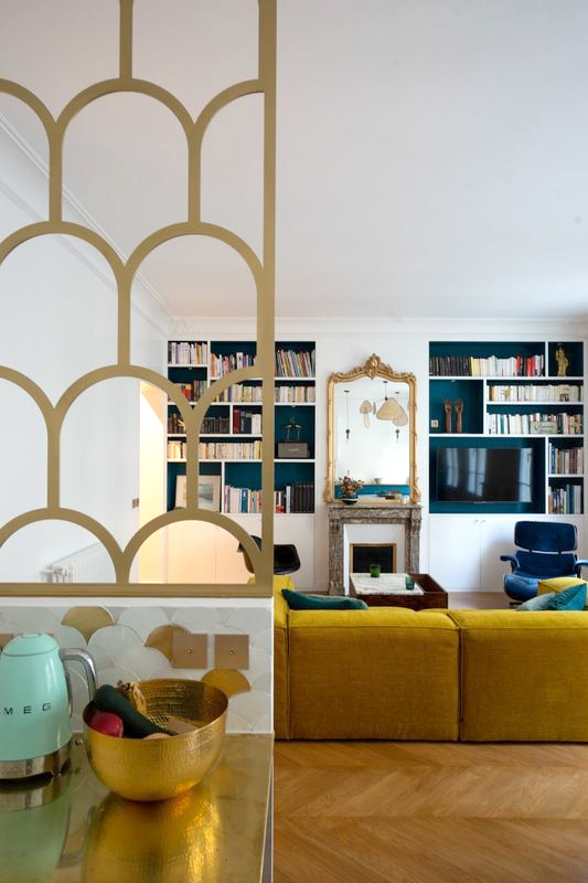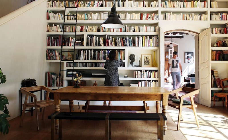 Les livres jusqu'au plafond et la vaisselle rangée par couleurs, j'adore ! Par contre c'est quoi cette mode de coller des herbes de la pampa et autres monstruosités séchées partout ? Au secours, effet loge de Mme Irma assuré !