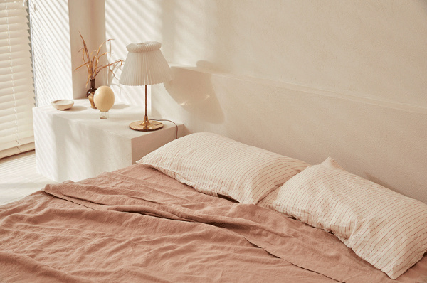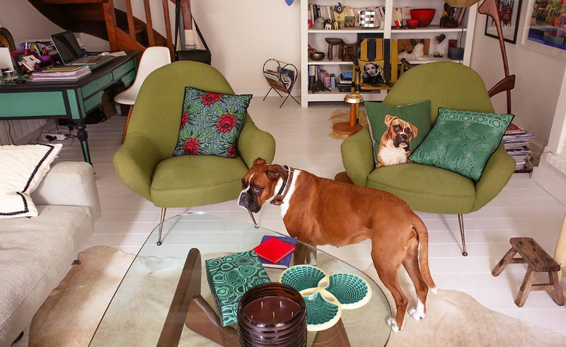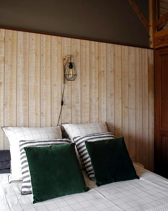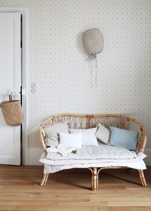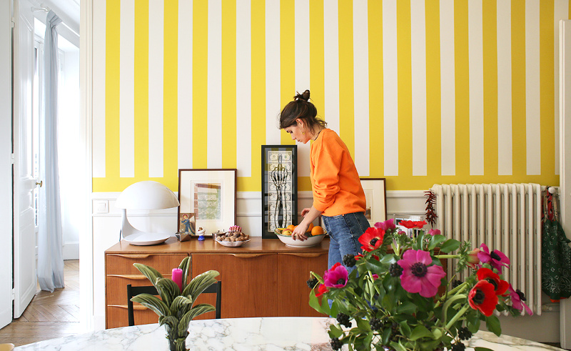 Recouvrir partiellement ses marches d'escalier de papier peint graphique (voir ici). Penser à insérer une banquette dans ses meubles faits sur mesure (voir ici). Faire grimper les livres jusqu'au plafond (voir ici). Twister un appartement haussmannien via un pan de mur rayé jaune et blanc (voir ici). Mettre sous cloche tout et n'importe quoi (voir ici et là). Broder le portrait de son chien sur un coussin (ou pas !). Dépareiller les chaises autour de la table (voir ici et là), l'idée étant de s'amuser à mixer des pièces différentes mais possédant néanmoins un point commun (texture, style, couleur…). Créer une tête de lit en recouvrant partiellement un mur de lambris brut (voir ici). Moderniser un espace au carrelage vintage en peignant les murs en noir (voir ici). Faire d'une assiette ou d'un simple ballot de paille des objets d'art à part entière (ou pas !). Associer drap en lin vieux rose et taies d'oreillers finement rayées (Deiji Studios).