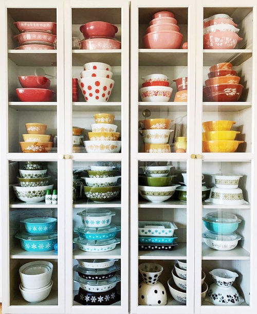 J'ai vu un jour, une bibliothèque rangée par couleurs, dans le même esprit que la vaisselle, et c'était très beau...dommage que les couvertures de livres soient moins bigarrées en France que dans les pays anglo-saxons!