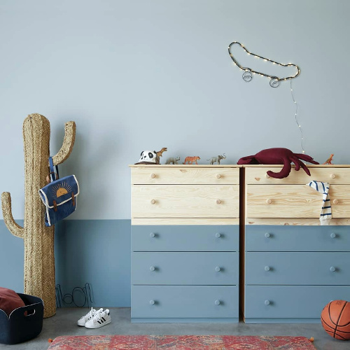en adoptant la couleur au reste de mon petit apartement façon deux couleurs sur meubles et murs.