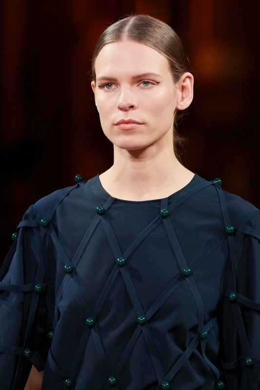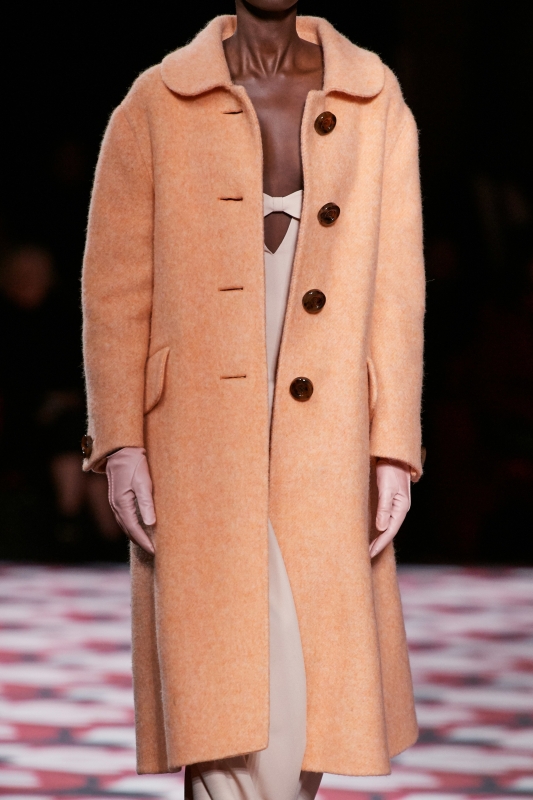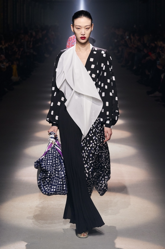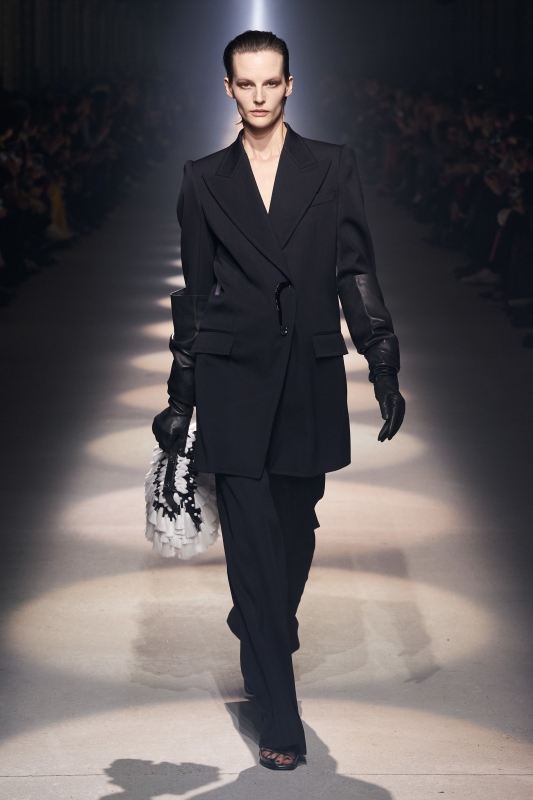 Au coeur des inspirations de saison de Clare Waight Keller, on retrouve l'esthétique des films de la Nouvelle Vague, le travail des photographes Ketty La Rocca et Helena Almeida ainsi que les silhouettes fifties signées Givenchy (voir ici, ici et là). Un mix dense qui donne naissance à une collection au tailoring assumé, aux partis pris graphiques forts et aux looks rétro revisités.