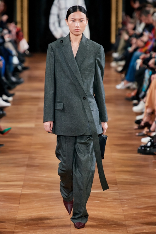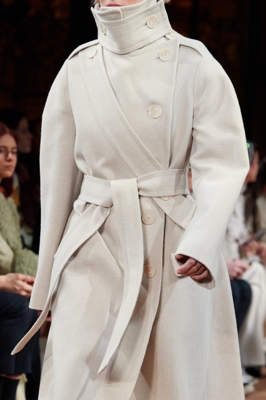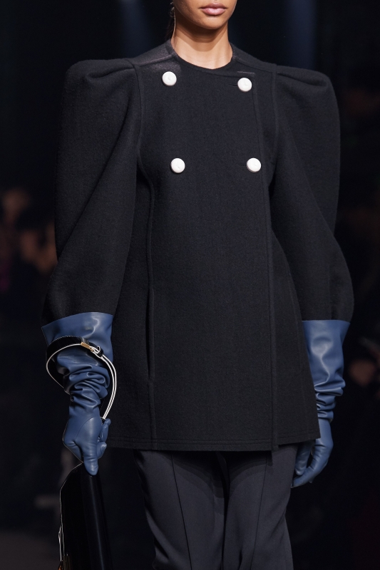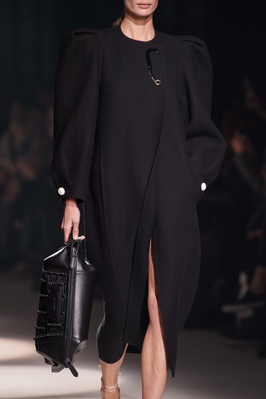 Les silhouettes rétro minimalistes et la sobriété des manteaux aux manches ballons (voir ici et là).