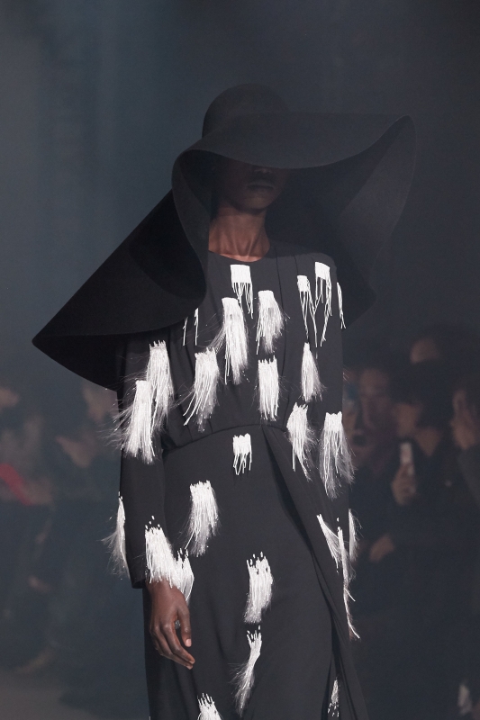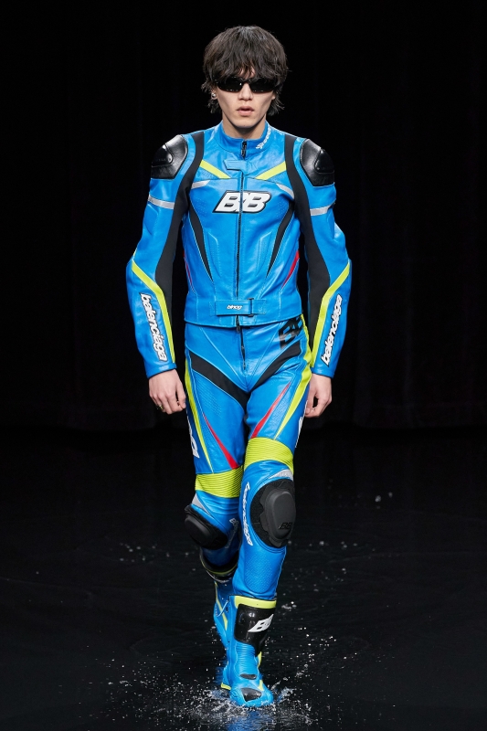 Cette petite communauté un brin morbide présenta une collection mêlant les codes Balenciaga (lignes précises, noir austère, volumes maîtrisés) à ceux de Demna Gvasalia (emprunts au sportswear, exagérations, sensualité sombre, fétichisme) et illustrant les composantes d'une "néo-société", entre membres d'un clergé à la Matrix (voir ici, ici et là), bourgeoises déchues (voir ici, ici et là), neurasthéniques résistant à l'angoisse quotidienne en revêtant des atours colorés (voir ici, ici et là), working girls futuristes (voir ici et là), coursiers tout terrain (voir ici et là) et party girls insomniaques (voir ici et là).