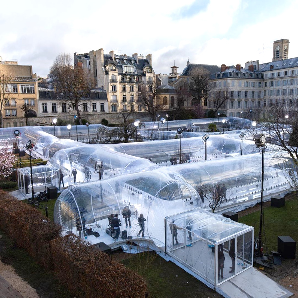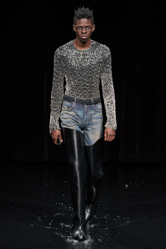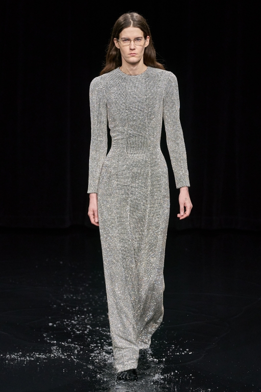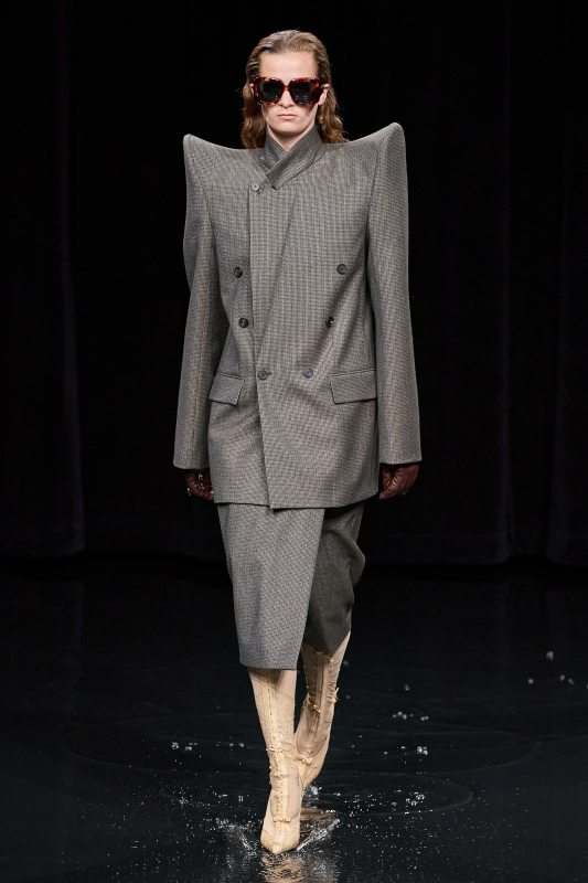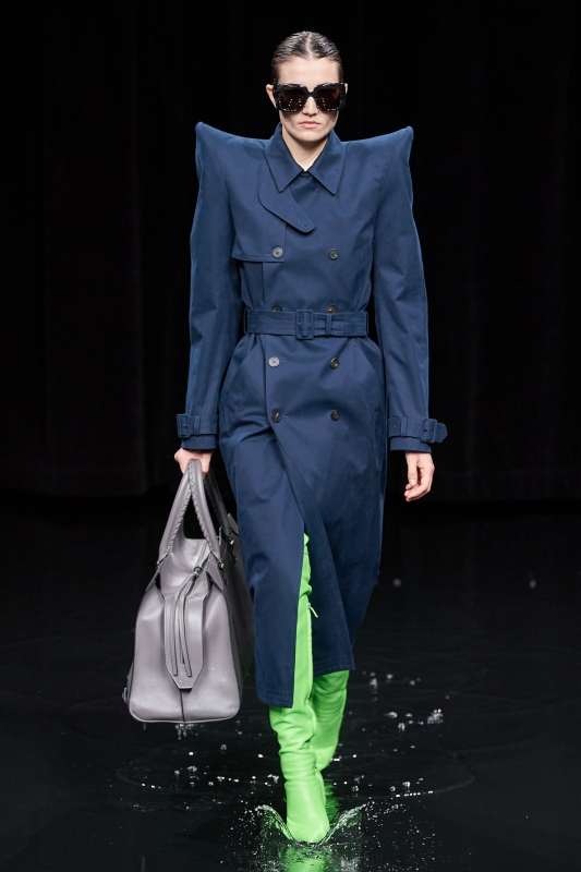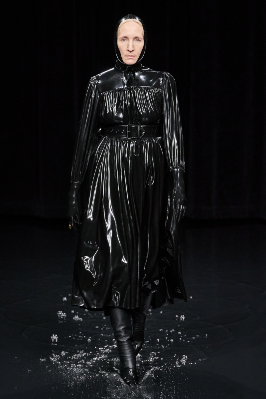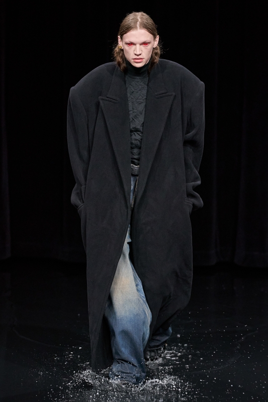 N'en déplaise à l'aristocratie fashion habituée à être placée au premier rang (voir ici), Demna Gvasalia rétrograda cette saison toutes les "front row girls" au troisième rang. Il faut dire que les deux premiers étaient inondés… Ajoutez à cette montée des eaux parisiennes un plafond LCD projetant des images lugubres et vous obtiendrez le décor le plus sinistre du moment, mais aussi et surtout le plus en phase avec l'atmosphère de ces derniers mois. Dans cette ambiance à la Barjavel défilèrent pas moins de 109 silhouettes dont le regard sinistre, les pommettes morphées et la démarche détrempée - mais néanmoins déterminée - achevèrent de faire de ce show Le moment fort de cette fashion week parisienne.