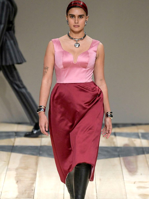 L'oversize caricatural, les cuissardes de pluie, les épaulettes chauve-souris et l'opportunisme de ce genre de partis pris scéniques lorsque l'on sait que l'industrie de la mode est l'une des plus polluantes.