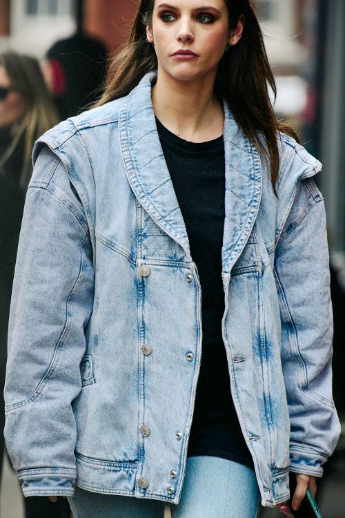2020. Si la chemise en jean fait toujours partie des intemporels du commun des mortelles, on l'a néanmoins peu vue aux abords des dernières fashion weeks. En matière de "haut en jean", le blouson légèrement oversize lui a volé la vedette (voir ici).