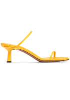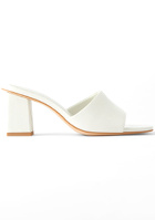 Le tee-shirt à épaulettes se glissera sur le devant du jean. On placera le chouchou sur un bun situé haut sur la tête. Il suffira de remplacer les sandales à talons par une paire de nu-pieds plus massive pour conférer au look une dégaine plus casual.