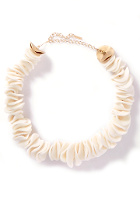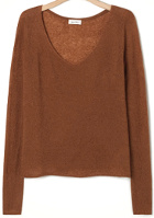 Le pull se glissera sur le devant du bermuda. Le collier sera mis en valeur par un chignon haut. On pourra remplacer les mules par des sandales blanches à talons et lacets.
