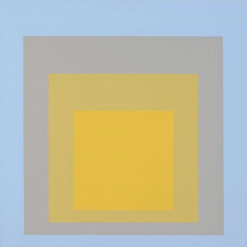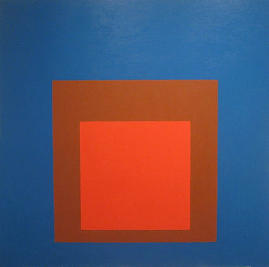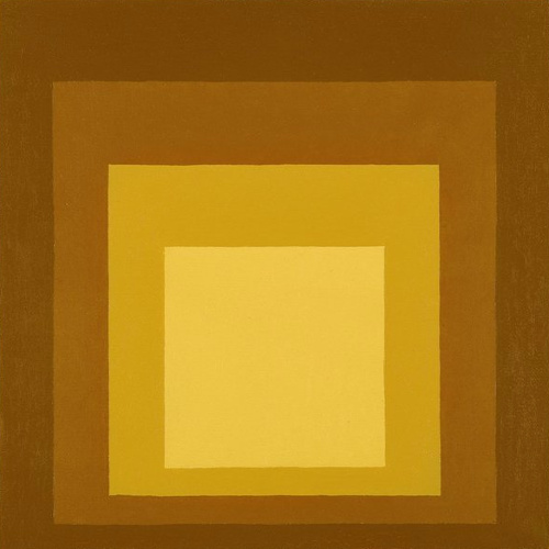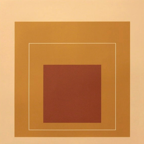 Si le mix rose/rouge fait désormais partie de ceux que l'on manie avec facilité, il n'est pas interdit de chercher à corser l'exercice en variant les tonalités des teintes composant ce tandem ou en leur associant un autre compagnon de jeu. Cette oeuvre de Josef Albers nous incite ainsi à opter pour un joyeux rose bubble gum, que l'on confrontera à un rouge tirant vers le brique saupoudré d'un café noir dilué au lait frais. À la fois naturel et sophistiqué, le résultat offre une nouvelle dimension à la coquetterie urbaine que diffuse d'ordinaire l'alliage du rouge et du rose, qui se fait soudain plus vibrant, moins attendu. Travaillés ensemble, le piquant du rose, la douceur sobre du marron clair et la maturité du rouge brique composent en effet une palette aussi inédite que savoureuse. On pensera dès lors à mixer robe rouge brique, sandales roses et petit sac café au lait, mais aussi salopette rose, marcel rouge et fédora marron clair ou encore jean large 7/8 couleur latte, caraco rose et foulard rouge brique noué dans les cheveux.