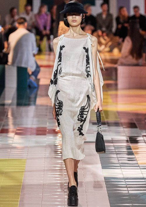 La toile grège de Prada rehaussée de broderies anciennes ....subtile