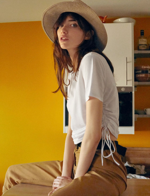 Ne pas sous-estimer l'efficacité du mix chapeau de paille/tee-shirt blanc (voir ici). Ceinturer de marron ses robes midi beiges mouchetées (voir ici). Twister sa marinière en s'offrant une paire de lunettes noires cat-eye (voir ici). S'essayer à la nonchalance de la nouvelle silhouette jean large/blazer court un brin large (voir ici). Détourner la robe vichy de son ADN girly en lui mariant une paire de bottes marron (voir ici). Déjouer la sévérité d'une robe bleu marine mi-longueur via une paire de sandales blanches à très fines lanières (voir ici). Faire blouser une chemise fluide imprimé ocre sur fond sombre dans un pantalon chino café au lait (droit et court sur la cheville), et marier le tout à une paire de baskets blanches (voir ici). Féminiser la combinaison utilitaire en la portant court sur la cheville et associée à une paire de tongs à talons et lanières (voir ici). Glisser un marcel loose mandarine dans un jean large taille haute bleu délavé (voir ici). S'approprier le bermuda à pinces bleu marine en lui mixant blazer masculin brou de noix, caraco blanc très féminin et baskets blanches (voir ici). Offrir une dégaine minimaliste chic au pantalon paréo en le portant avec un haut moulant monochrome à manches longues et une paire de tongs à talons (voir ici).