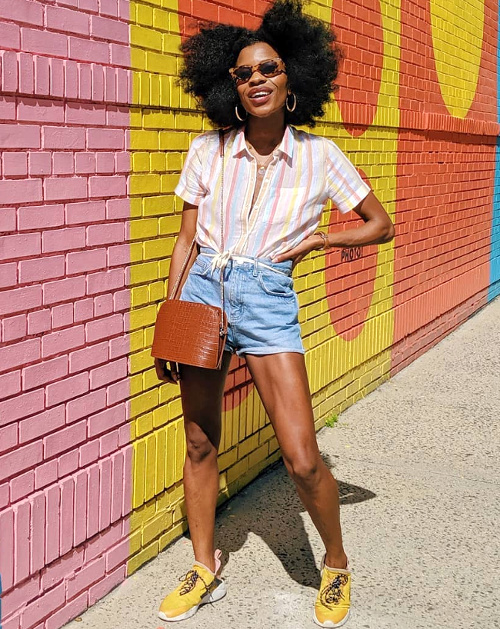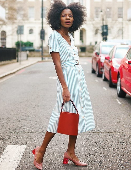 Booster un short en jean délavé taille haute au contact d'une chemise aux rayures verticales pastel nouée sur le devant (voir ici). Travailler en camaïeu de teintes un petit gilet ajouré et une jupe ethnique (voir ici). Apaiser ses blouses les plus kitsch au contact d'un jean (voir ici et là). Sophistiquer une robe estivale aux rayures vert clair en lui associant un sac rouge rigide (voir ici). Structurer une combinaison-pantalon un brin large (ou une robe ample) via un néo sac banane (voir ici et là). Marier caramel, vert pomme et touche d'orange (voir ici). Marier pièce en denim brut et manteau à larges motifs rose saumon sur fond blanc (voir ici). Travailler sa silhouette en longueur en mariant turban et combi sans manches à rayures verticales (voir ici).