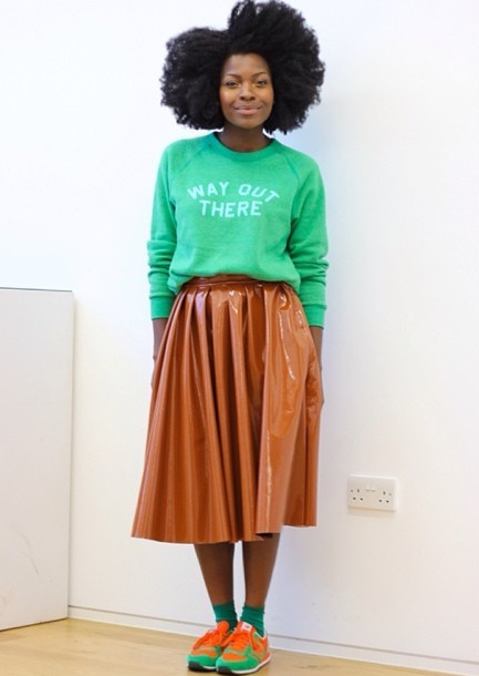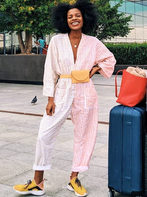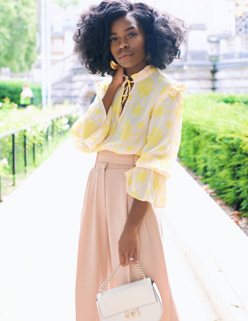 Merci pour la découverte, j'adore ! Son style féminin, ses associations de couleurs, son sourire ! Et c'est la première fois que je vois un look avec sac banane qui me fasse envie !