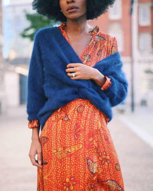 Associer jean délavé et jaune moutarde dilué (voir ici). Opter pour des pièces mêlant imprimé esprit wax et coupe contemporaine (voir ici). Traiter le costume avec chic et espièglerie (voir ici, ici, ici et là). Faire de l'ample robe imprimé un élégant vêtement doudou (voir ici). Marier bleu outremer duveteux et imprimé orangé (voir ici). Réchauffer une combinaison utilitaire au creux d'une veste ou d'un manteau à carreaux "british" (voir ici). Upgrader le trio top casual/jupe longue fleurie/baskets via un sac à main rigide (voir ici). Contrebalancer la sobriété d'une combinaison-pantalon via une accessoirisation recherchée (voir ici).