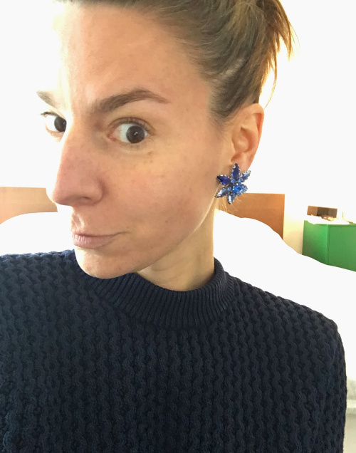 Alors là je ne suis pas d'accord concernant les boucles d'oreilles chinées : j'A-DORE avec ce petit pull bleu.