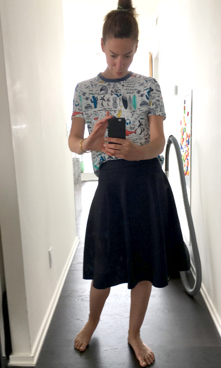 C'est drôle je trouve que les cols V te vont bien... peut-être parce que c'est ma forme fétiche ! Mais nous n'avons clairement pas la même silhouette ! Avec une poitrine importante les ras de cou sont une punition ! Sinon je te trouve sévère avec toi-même d'une façon générale, la plupart des looks sont réussis. Big crush pour le haut sans manches porté avec la jupe bleu marine en forme, très joli imprimé