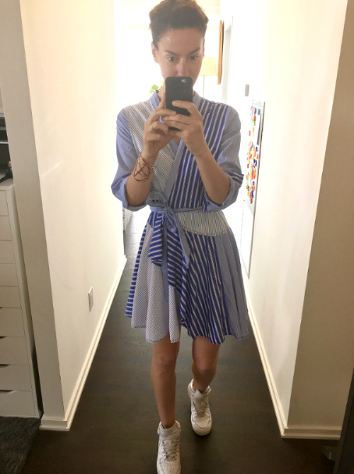 Et j'aime toujours autant cette robe portefeuille, avec les baskets blanches, le look est parfait.