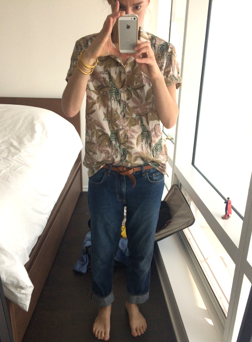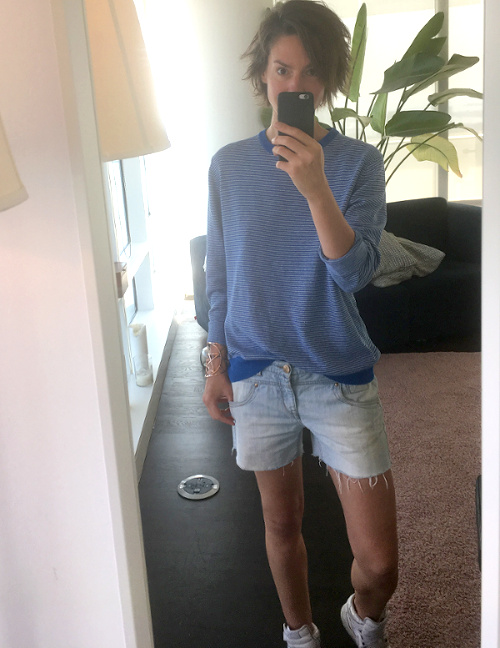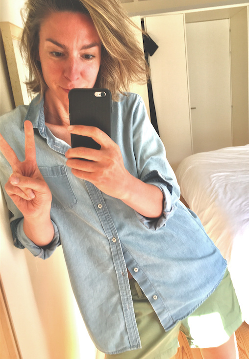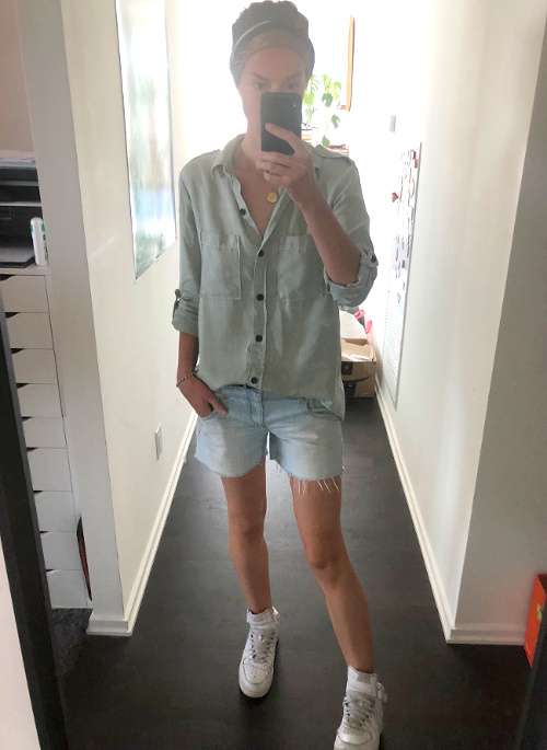 Notamment le duo chemise en jean/short kaki sans fioritures, c'est justement cette absence de bijoux qui rend le look cool et qui te va bien je trouve.