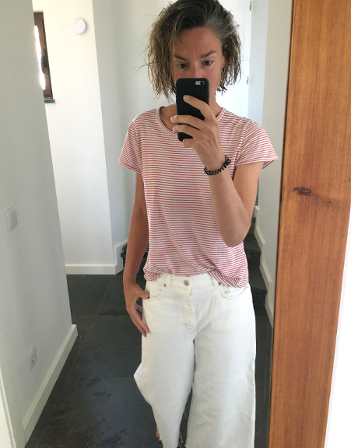Chouette, ravie de voir ta revue de style au fil des ans. Tu me donnes envie de piquer la superbe chemise tahitienne de mon mari (en noir et blanc, un imprimé fleuri magnifique) qu'il ne porte jamais. Et je valide, les pantalons blancs, ça va avec tout.