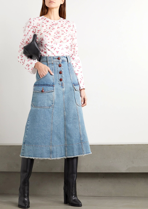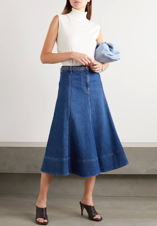 La jupe en jean mi-longue : micro tendance automne/hiver 2020-2021