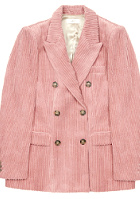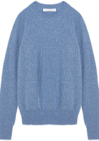 Les manches du pull dépasseront de celles du blazer. On pourra faire froncer sur la malléole de fines et hautes chaussettes bleu ciel légèrement lâches. Le sac se portera au travers du buste. On pourra opter pour une queue de cheval haute. L'idée est ici d'offrir une dimension automnale au rose et au bleu azur grâce à des matières douillettes.