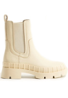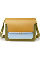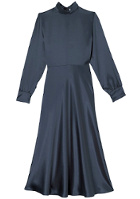 On roulottera légèrement les manches du gilet afin de faire dépasser les manches de la robe. L'idée est ici de détourner des teintes utilitaires (kaki, bleu marine, blanc) en les travaillant sur des matières soit ultra féminines, soit infiniment cosy et de structurer la silhouette grâce à un sac rigide apportant de la tenue à l'ensemble.