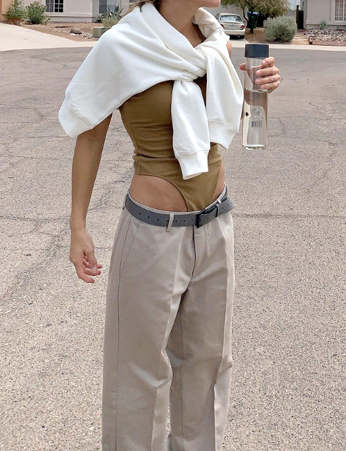 Le maillot de bain ultra échancré rappelant une série B des années 90 ne faisant déjà pas l'unanimité, que dire du body misant sur le décolleté de hanches pour sensualiser un pantalon large ? (Sandra H. Sauceda) Si associer un sac griffé à un pull cosy fait partie des gimmicks quasi inratables, les choses se corsent lorsque ledit sac se voit imposé par un partenariat commercial… (Sheree Commerford) Même en respectant certaines règles du jeu fashion (ici marier des éléments de styles différents et égayer un total look noir via un mix and match de textures), il arrive parfois que le résulat final se révèle discutable… (Frédérique Harrel) Aussi talentueuse soit la créatrice russe Vika Gazinskaya, le premier degré folk de sa tenue ne lui fait pas honneur. N'en déplaise à feu Karl Lagerfeld, porter du Chanel est rarement une bonne idée, et ce même lorsque l'on possède une silhouette de mannequin haute couture (Chiara Totire) Réussir à magnifier la tendance blazer oversize tient à un subtil équilibre entre carrure XXL maîtrisée et ampleur du modèle. Un équilibre que n'a malheureusement pas réussi à trouver la jolie Alexis Foreman. Habituée aux looks épurés fleurant bon l'équation parfaite, la créatrice du compte Instagram Death by Elocution semble avoir oublié que même les mix and match osés ont besoin d'un minimum d'harmonie pour fonctionner. La réussite d'un nouage de veste autour des hanches tenant pour beaucoup au volume de celle-ci, mieux vaut éviter de porter son blouson en shearling ceint autour de la taille… (Martha Ward) Apparemment grisée par les réminiscences nineties saturant l'air du temps, la très suivie Audrey Lombard succombe ici au premier degré en mixant sweat violet et chaînettes massives. L'amour du vintage a pour limite l'improbabilité des pièces chinées… (Caroline Bille Brahe)