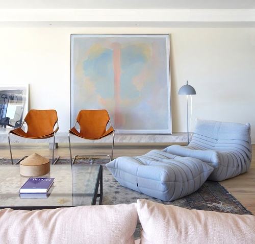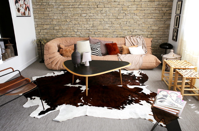 S'amuser à créer des effets de mise en abîme (voir ici). Mixer imprimé noir et blanc et cuir couleur cigare (voir ici). Opter pour un long canapé asymétrique permettant à une famille de se l'approprier facilement (voir ici). Télescoper l'éclat mélancolique d'une immense photographie noir et blanc à la chaleur organique d'un tabouret "bûche de bois" (voir ici). S'offrir un canapé sur mesure à moindres frais en superposant palettes et coussins rectangulaires en mousse (voir ici). Mixer vert sauge et jaune fluo (voir ici). Injecter une touche de légèreté au shearling en optant pour des fauteuils bas esprit transat d'intérieur (voir ici). Regrouper toutes ses bougies usées sur un plateau circulaire (voir ici). Assumer ses goûts les plus étranges (chez Lou Doillon, chez Miranda Kerr). Ne plus s'embêter à accrocher les cadres au mur (voir ici et là). Palier la dimension kitsch de la plupart des jouets de bébé en s'offrant du mobilier de puériculture correspondant à ses goûts esthétiques (voir ici).
