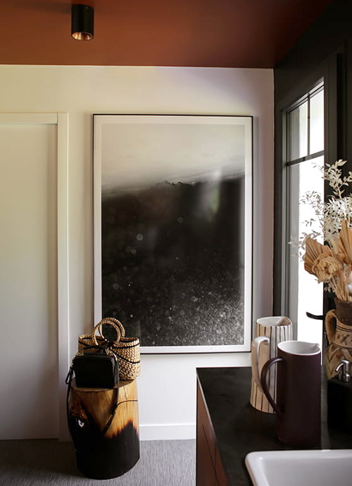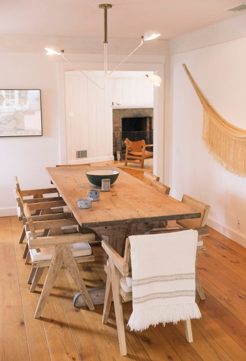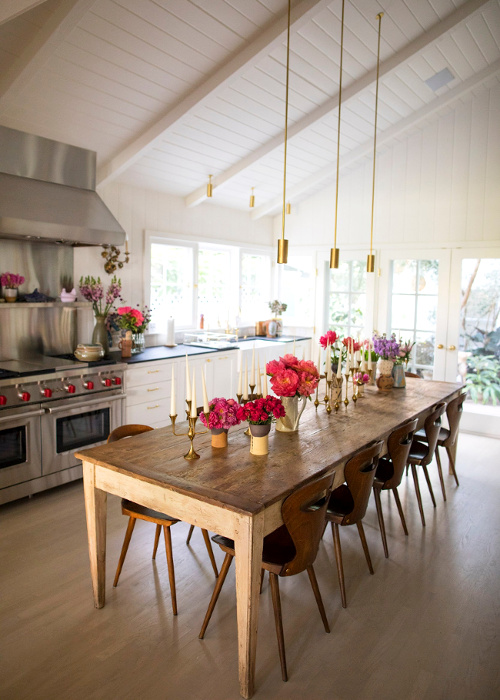 Se passer de plafonnier grâce à des installations filaires (voir ici, ici et là). Dénicher de belles boîtes de conserve afin de les transformer en pots à crayons (voir ici). Ne pas hésiter à offrir une touche arty à l'espace vaisselle (voir ici). Associer fauve et bleu ciel (voir ici). Conserver - en guise de souvenirs - dans un bocal transparent les billets de banque de pays étrangers (voir ici). Faire de son balcon une bulle de verdure urbaine (voir ici). Twister un mobilier rustique via un luminaire épuré (chez Jenni Kayne, chez Irene Neuwirth). Jouer avec le style monacal en mariant draps en lin frais, luminaires très sobres et tableau contemporain en guise de tête de lit (voir ici). Oser faire de la place à l'orange au sein de son intérieur (voir ici). Injecter une touche de modernité à un mur recouvert de papier peint en peignant les boiseries alentour dans une teinte forte (voir ici et là).