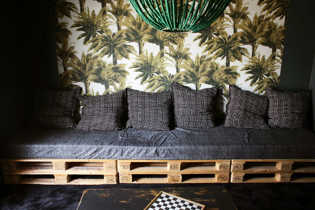 Il faut absolument dire une chose sur la déco à base de palettes de bois : ce genre de matériel est à ma connaissance, très souvent traité (anti-rongeurs, anti-insectes). Je ne suis pas sûre que vivre à proximité immédiate de ce genre de produit, dans un espace clos, soit bon pour la santé des adultes et surtout des enfants qui mettent tout à la bouche.