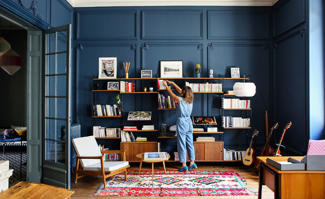 Imaginer une déco susceptible de booster la mémoire de sa progéniture (voir ici). Oser faire du béton un pourvoyeur de sérénité (voir ici). Choisir son canapé en fonction de son potentiel à nous accueillir au long cours (voir ici). Associer des cadres rectangulaires de même hauteur mais de largeurs différentes (chez Mathilde Lacombe). Recouvrir murs, boiseries et moulures d'une même et seule teinte de peinture afin de créer un espace monochrome de caractère (voir ici et là). Contrebalancer l'aspect compact d'un canapé via un abat-jour graphique et aérien (voir ici et là). Traiter sa bibliothèque comme un cabinet de curiosités à part entière (chez Caroline Issa). Se mettre aux origamis afin de trouver une alternative originale aux traditionnelles têtes en peluche trophées (chez Chloé Fleury) (voir ici et là).