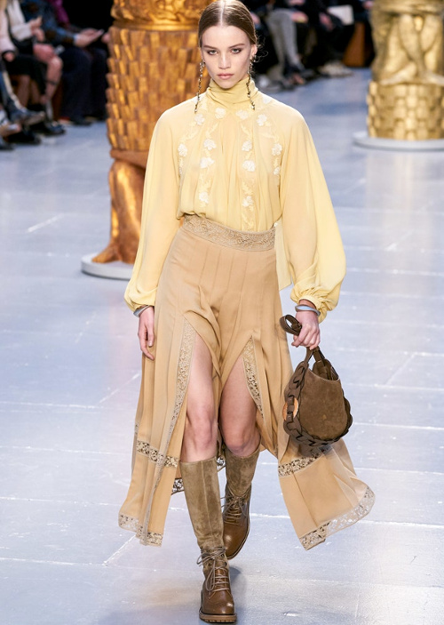 On appréciera également les variations proposées par Isabel Marant qui, à défaut d'être révolutionnaires, n'en apparaissent pas moins infiniment confortables et instantanément transposables au sein de notre quotidien. Mais aussi les silhouettes Chloé mariant le jaune beurre frais à du beige (ou à des carreaux marron), mettant ainsi en exergue sa comptabilité avec les codes automnaux et sa féminité libre et plurielle.