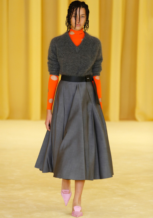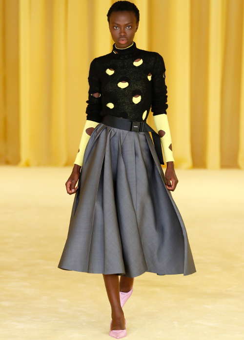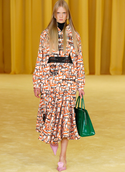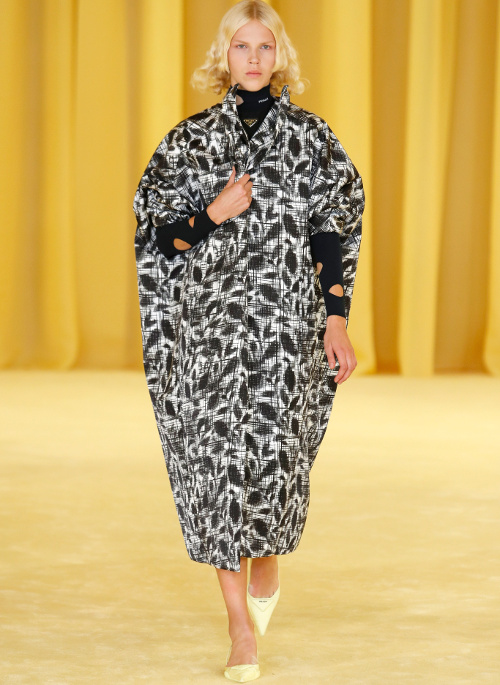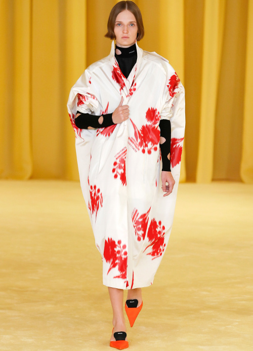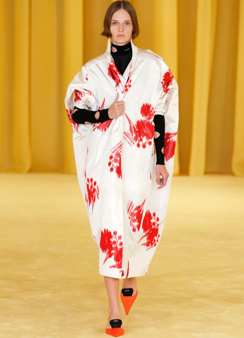 Ajoutez à cela des imprimés fleuris (pour lesquelles ils ont un intérêt commun), des ensembles jupe ample/petit pull épais évoquant le style personnel de Miuccia Prada et des manteaux à la structure complexe flattant leur amour des coupes audacieuses et vous obtiendrez une fusion équilibrée entre leurs deux univers.