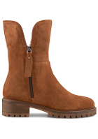 Faire dépasser du pull le col de la chemise. Glisser légèrement le pull sur le devant de la jupe. Porter la parka ouverte lorsque le temps le permet. Télescoper la douceur sensuelle de la jupe à la dimension country/roots des bottines.