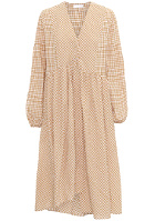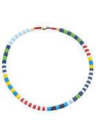 L'idée est de mixer la rigueur masculine du caban avec la douceur de la robe, d'égayer cette dernière au contact d'un collier joyeusement régressif et de twister l'ensemble via un détail sportswear (ici la casquette marron).