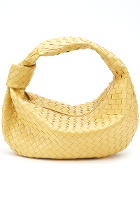 Roulotter le pantalon sur la cheville. Porter le sac à l'épaule. Veiller à ce que les deux jaunes se marient bien dans la réalité. Ne pas hésiter à glisser sous le pull un tee-shirt blanc moulant un peu long afin de le faire dépasser dudit pull.