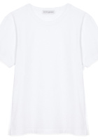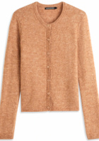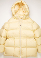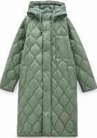 L'idée est ici de télescoper le style cocon de la doudoune avec celui plus seventies du duo jupe/bottes et d'obtenir un effet "douceur chic" en mariant volume audacieux et cardigan sage. Les coloris du tee-shirt à message servent par ailleurs le camaïeu de teintes.