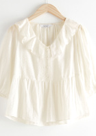 Le mix blouson ample et douillet/blouse esprit vintage confère au look un halo cosy féminin. La montre masculine permet de twister la blouse. On veillera à ce que le jean tombe généreusement sur les baskets.
