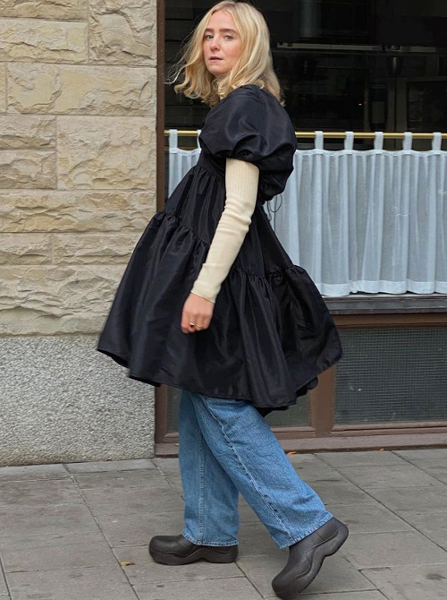 Si l'association robe/pantalon fait partie des gimmicks récurrents au sein des récentes collections, cela ne signifie pas pour autant que l'on peut mixer n'importe quel pantalon avec n'importe quelle robe… (Fanny Ekstrand, Anna Sarlvit) Aussi chaleureux que peuvent être les camaïeux de marron, choisir les différentes nuances de ces derniers reste un exercice périlleux (Anna Sarlvit). Appliqué aux bottes, l'effet "flare" se révèle plus étrange que séduisant (Camille Charrière). Avoir de jolies jambes est une chose, réussir à les dévoiler avec subtilité en est une autre... (Camille Charrière) Une pièce doit choisir son camp, sous peine de diluer totalement son identité et de perdre en impact, à l'instar de ce pull/poncho/tunique sans manches (Emitaz). Faire croire à la légitimité fashion du duo pull sans manches esprit grand-père/chemise vert d'eau à rayures épaisses n'est guère charitable... (Monica de La Villardière) Si le fait de glisser un sous-pull sous un top estival afin de prolonger sa longévité saisonnière est assurément une bonne idée, remplacer celui-ci par un lainage épais l'est nettement moins (Fanny Ekstrand). L'effet tassant du trio casquette de marin portée enfoncée sur le crâne/veste boxy trop grande/semelles ultra fines n'épargne personne, aussi connectée à l'intelligentsia fashion soit-on (Monica de La Villardière).