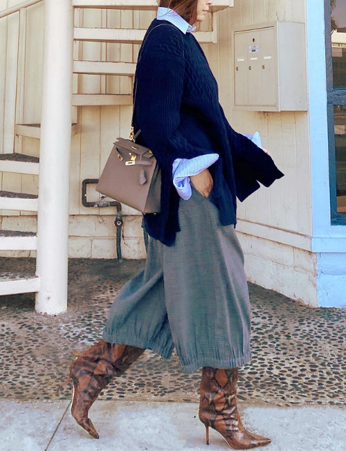 Gros sujet, la longueur du pantalon/du jean. Perso, je ne sais plus comment porter mes jeans pour cette raison précisément, surtout quand je veux porter des talons et que je ne veux pas que mes jeans soient des 7/8 (dans 6 mois, on en aura marre et je ne pourrai pas alors les rallonger).