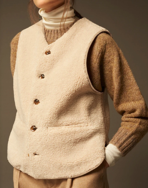 NB : Si l'esthétique des années 70 commence à vous lasser, sachez que la peau lainée se décline sous de multiples formes (qui n'enlèvent rien à sa qualité première : le réconfort thermique), entre pelisse pour jedi (Isabel Marant), gilet intergénérationnel (Soeur) et pelisse néolithique (Arch The).