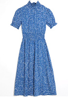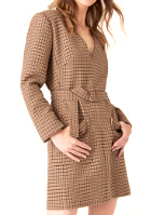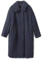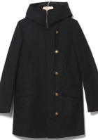 On fera dépasser la capuche du sweat sur le col du manteau. Le rose du bonnet permet de booster l'éclat du bleu marine. La rudesse des bottes est ici apaisée par l'ultra féminité de la robe.