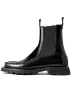 La finesse du collier contrebalance la masculinité des boots. La robe se portera cintrée ou non, en fonction des goûts. On adjoindra à ce look une paire de collants opaques noirs. La dimension cosy de la chapka permet d'apaiser la dimension sexy de la mini-robe.