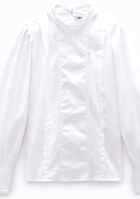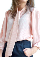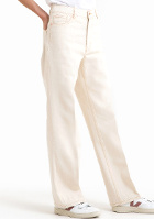 Le jean se roulottera sur la cheville. On fera froncer les chaussettes sur la malléole. La blouse se glissera à demi sur le devant du jean. On pourra porter un chignon haut flou.