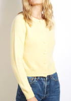 Je portais justement le même cardigan mila jaune d'A Golovanof aujourd'hui (avec un pantalon en velours marron) ; et pour une fois que je boutonnais le premier bouton, il m'est resté dans les mains : les boutons sont recouverts de jersey et je ne peux pas le réparer ; alors à moins de changer tous les boutons...