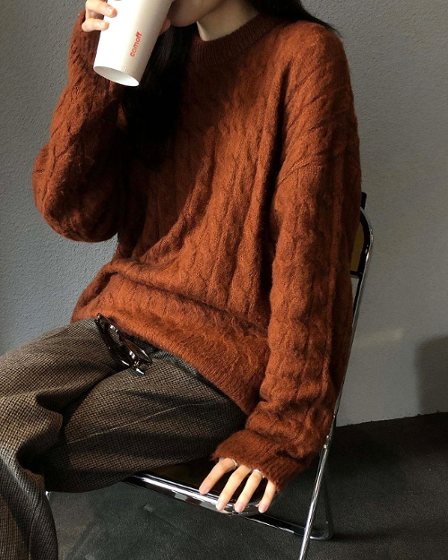 Porter ses jeans trop larges roulottés sur une paire de ballerines à bouts pointus, le tout réhaussé par un ample pull ajouré (voir ici). Associer les pièces larges sans tasser sa silhouette, en optant pour un pull ample légèrement cropped dévoilant la taille haute du jean (voir ici). Revendiquer la dimension cosy de ses looks nineties en travaillant en camaïeu pull sans manches, pantalon masculin, tee-shirt oversize, converses et grosse écharpe (voir ici). Préférer au banal jogging en molleton sa version en velours côtelé (voir ici). Marier marron, blanc et lavande acide (voir ici). Faire d'un blazer en drap de laine trop grand sa veste de demi-saison (voir ici). Adoucir le style masculin d'un pantalon large marron à petits carreaux en lui mariant un pull moelleux au coloris chaleureux (voir ici). Acérer la dégaine du duo jean large/pull ample col roulé en chaussant une paire de boots plates à bouts pointus (voir ici). Réchauffer ses joggings en molleton au contact d'un blazer évoquant ceux de nos grands-oncles (voir ici). Marier l'authenticité d'un pull irlandais écru à la douceur androgyne d'un pantalon large bleu marine en velours côtelé (voir ici).